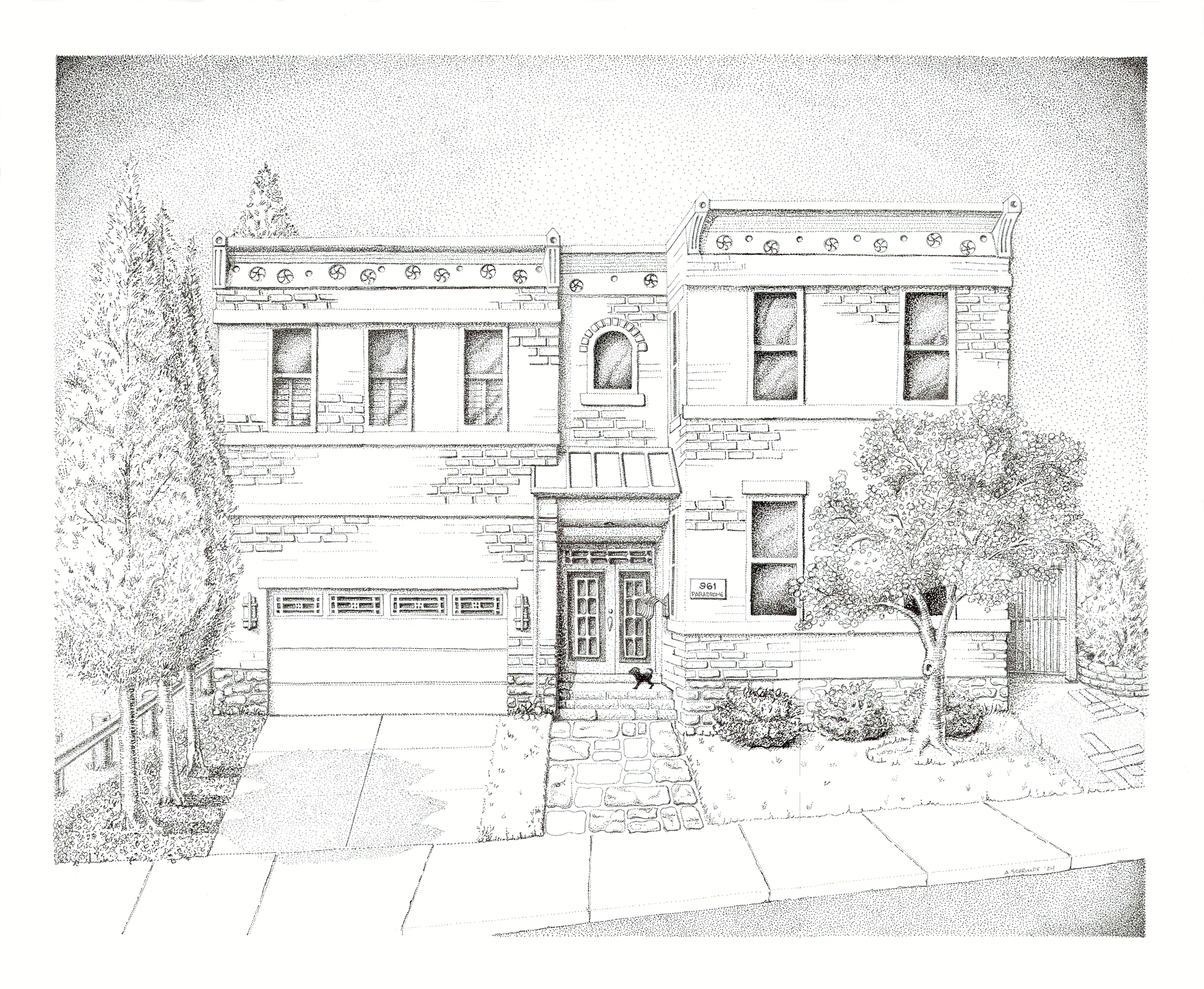 Custom House illustration in black & white pointillism or full color watercolor. These hand drawn or hand painted homes are completed from you photos. Please send 4-6 views of your home being sure to focus on the front entry. A preliminary sketch will be provided for approval prior to the final artwork being completed. Digital, Print or Framed delivery. Please allow 4-6 weeks for delivery.